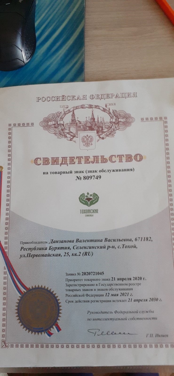 Наконец то получили на руки регистрационное свидетельство товарного знака "Тохойские саженцы" . Спасибо Гарантийному фонду Республики Бурятия, Центру "Мой Бизнес" и лично Карпукову Владимиру Васильевичу за проделанную работу и оплату товарного знака.
